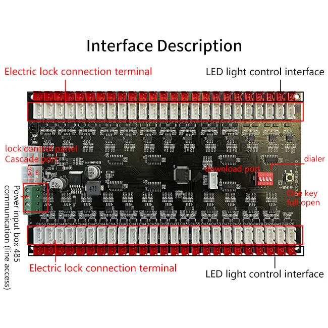 Product DescriptionSpecificationitemvalueModel NumberUPUS-SKB50Typelock control pcbaPlace of OriginChinaBrand NameUPUSSupplier TypeOEMCopper Thickness1 ozProduct name50 channels lock control boardApplicationsmart locker/vending...