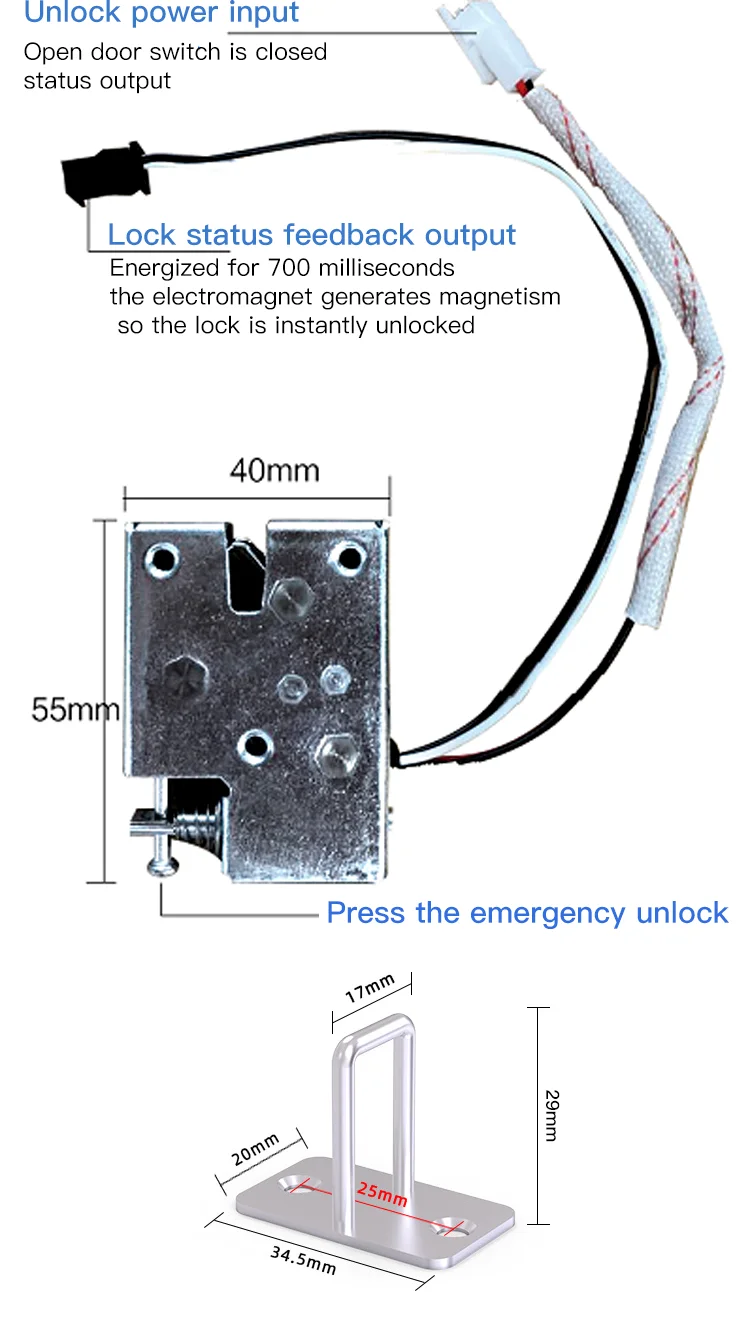 The 8812 type electric control lock is a core component of the smart locker. It has a signal feedback function, which can monitor the lock body status (unlocked/locked/abnormal) in real time and synchronize it to the control system, enhancing the reliability of security. It adopts electromagnetic drive technology, with a fast response speed (≤0.5 seconds), supports 12V DC power supply, and is compatible with various cabinet materials and installation methods.